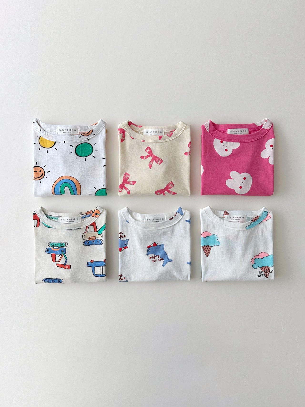 Basic short-sleeve tee with fun graphic prints. Over-fit. Made of 30s' lightweight cotton fabric.