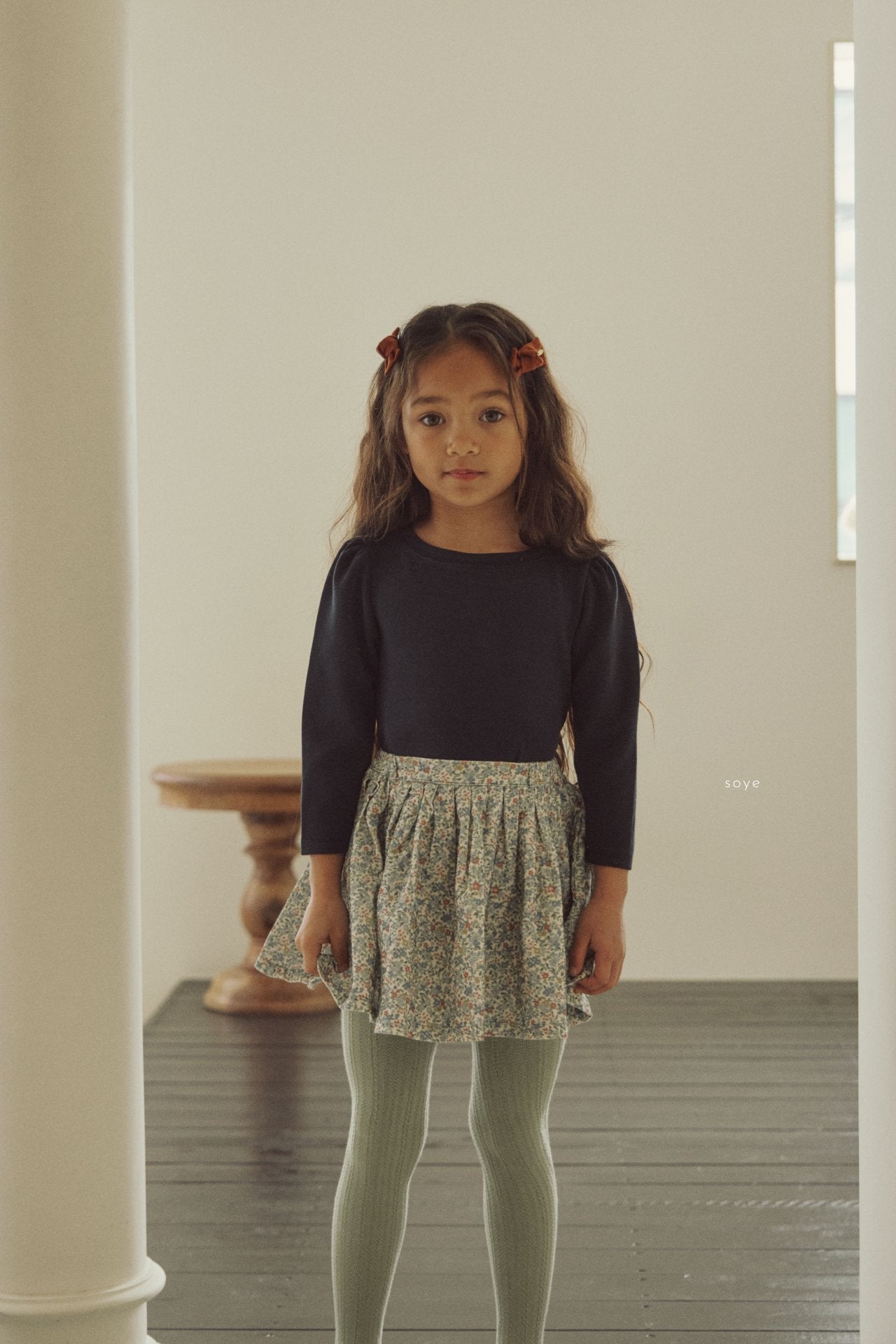 Soft shirring tee for little girls, featuring shirring sleeves. Super soft handfeel.