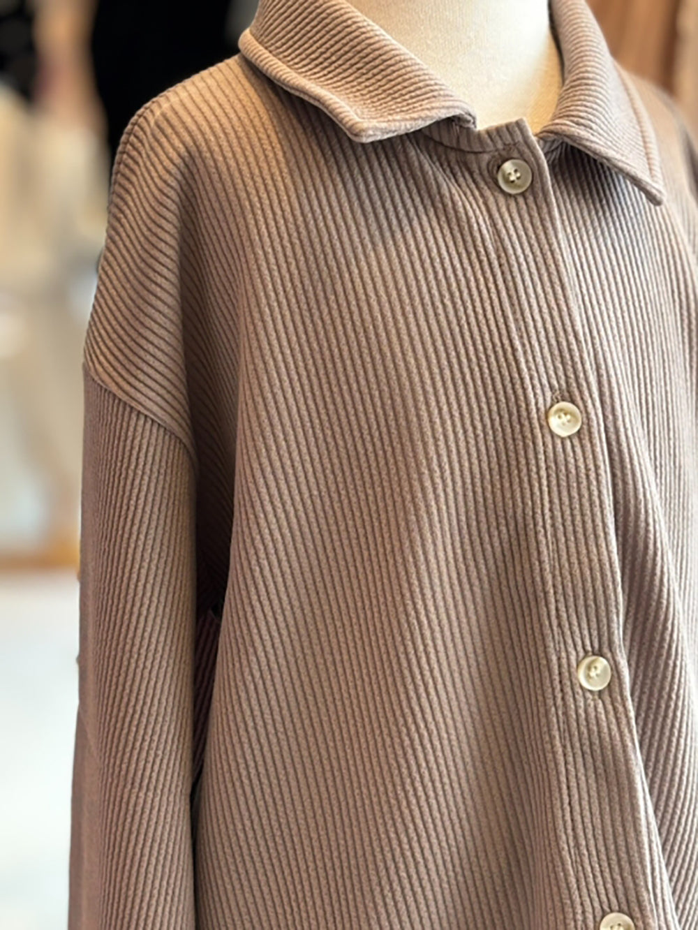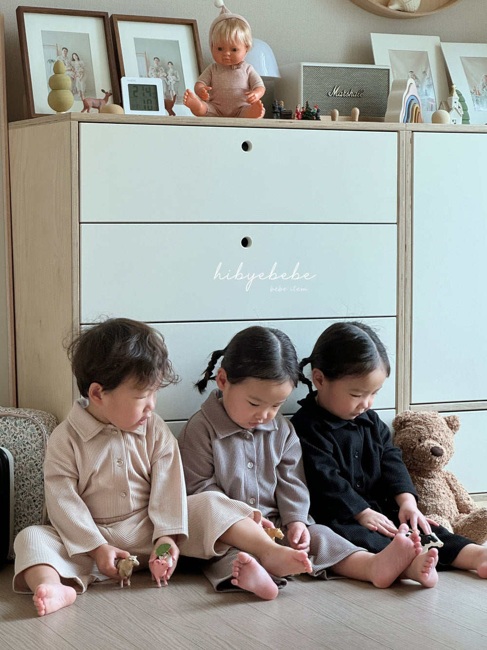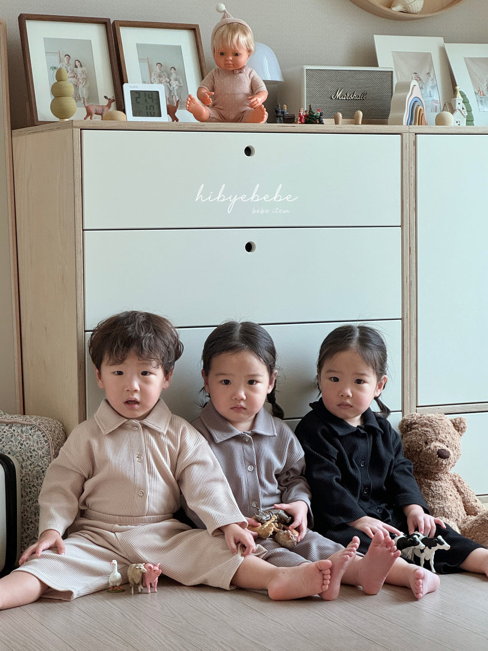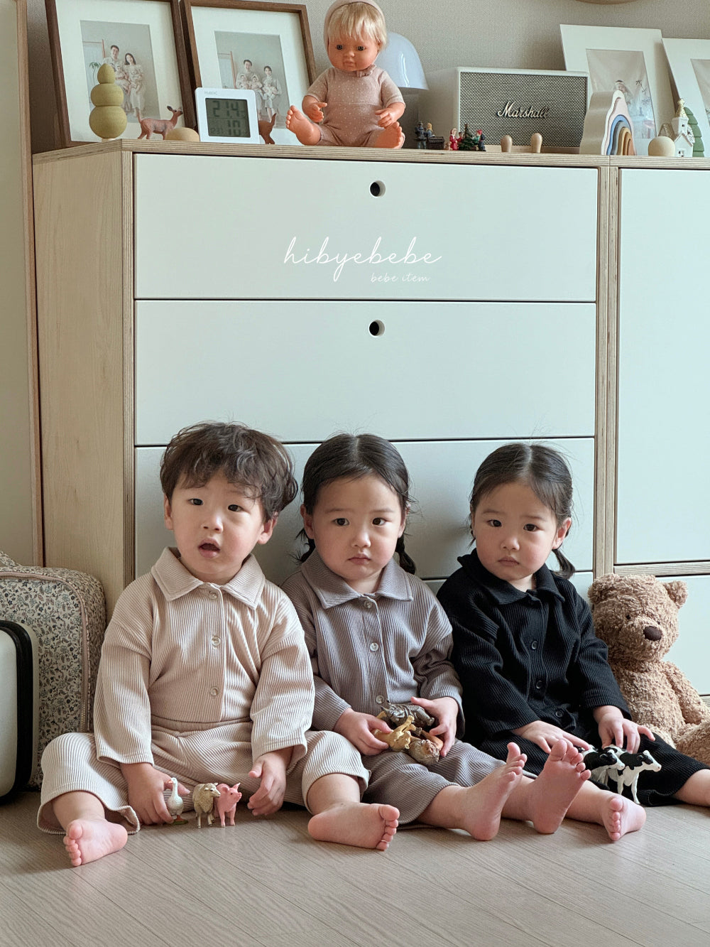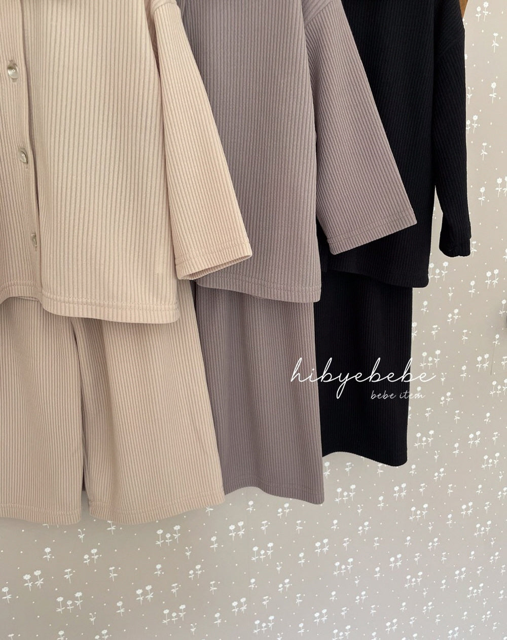 Basic and comfy collar top and bottom set for little ones. Semi-cropped length.
